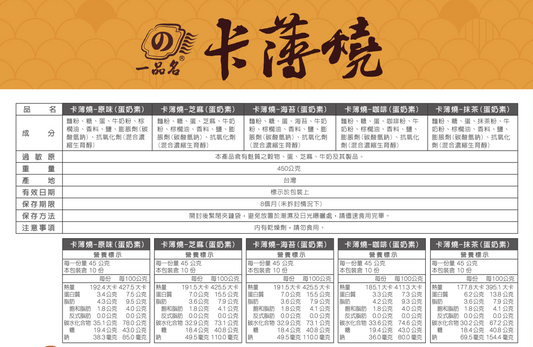 一品名 卡薄燒 450g(蛋奶素)