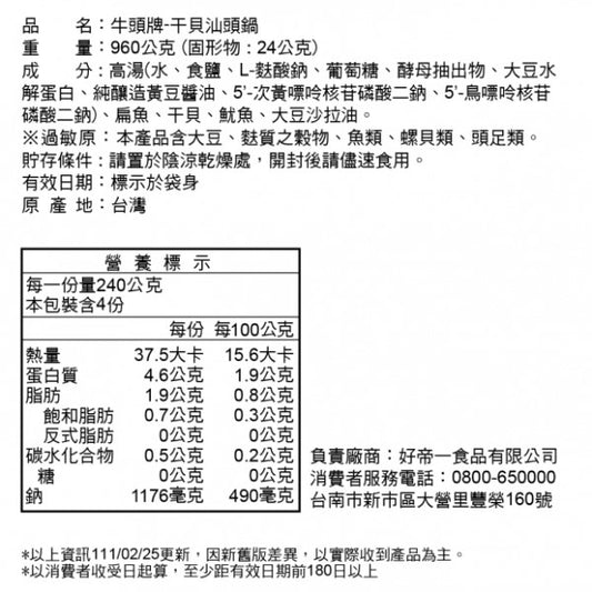 【牛頭牌】干貝汕頭鍋(960g*袋)