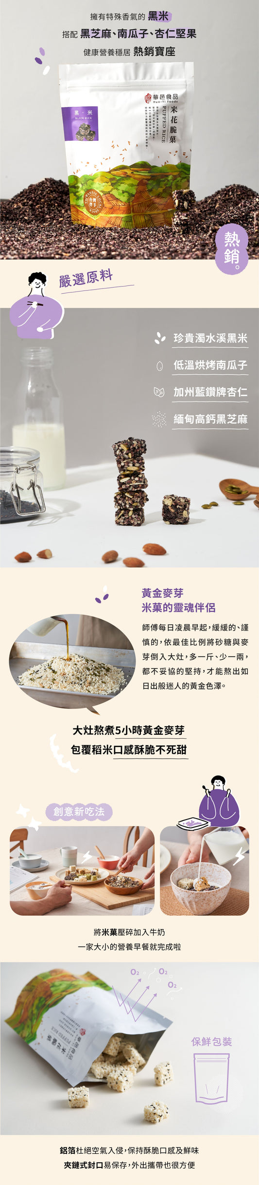 華邑食品 黑米米香脆片 Hua Yi Puffed Black Rice Cracker(10入/包)