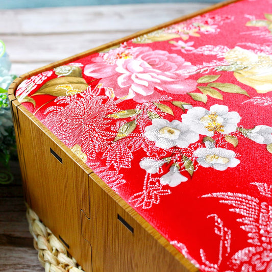 【龍源茶品】時尚精品頂級杉林溪高山荔馥紅茶葉 富貴牡丹花布竹藝茶葉禮盒 LONG YA TEA Fashion Premium Top-Grade Shanlinxi High Mountain Lychee Fragrance Black Tea With Noble Peony Fabric Bamboo Art Tea Gift Box(30gx3包-共90g/盒)