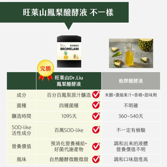旺萊山Dr.Liu - 鳳梨醱酵液 原汁純釀發酵液 世界金牌獎 國家玉山獎 蔬果酵素液 (720ml/瓶)