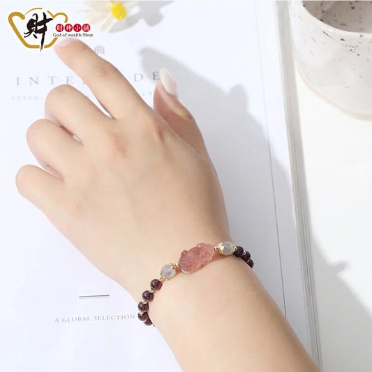 2025情人節 💌 | 台中鎮瀾宮 【財神小舖】幸運紅榴石 - 草莓晶貔貅手鍊 (含開光)(1入)