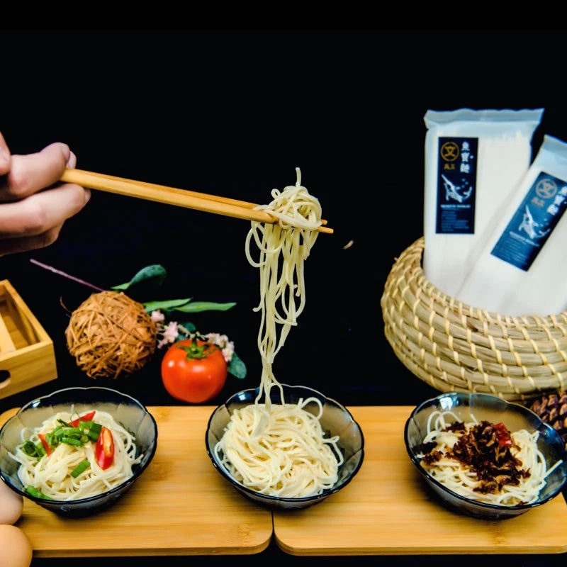 丸文食品將旗魚蛋白濃縮進麵條中,讓你吃麵的同時也能爽爽吃魚喔!