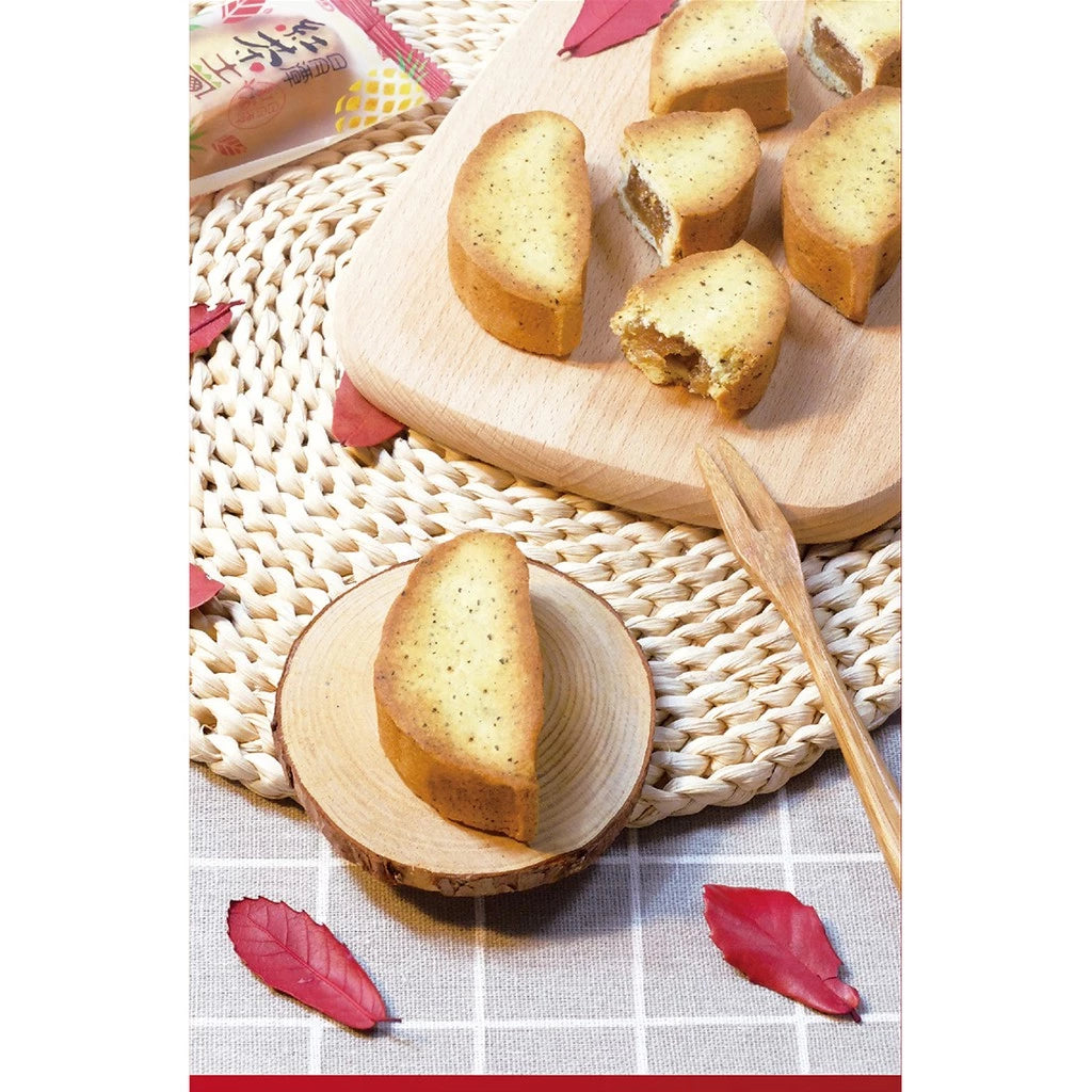 成分: 鳳梨紅茶蔬果醬[蘿蔔泥、麥芽糖、蕃薯、砂糖、冬瓜、棕櫚油、鳳梨、紅茶粉、食鹽、檸檬酸(調味劑)、香料、偏亞硫酸氫鈉(抗氧化劑)]、麵粉、酥油、糖、雞蛋、奶粉、麥芽、紅茶粉、己二烯酸鉀(防腐劑)、泡打粉(酸式焦磷酸鈉、碳酸氫鈉、磷酸二氫鈣)。