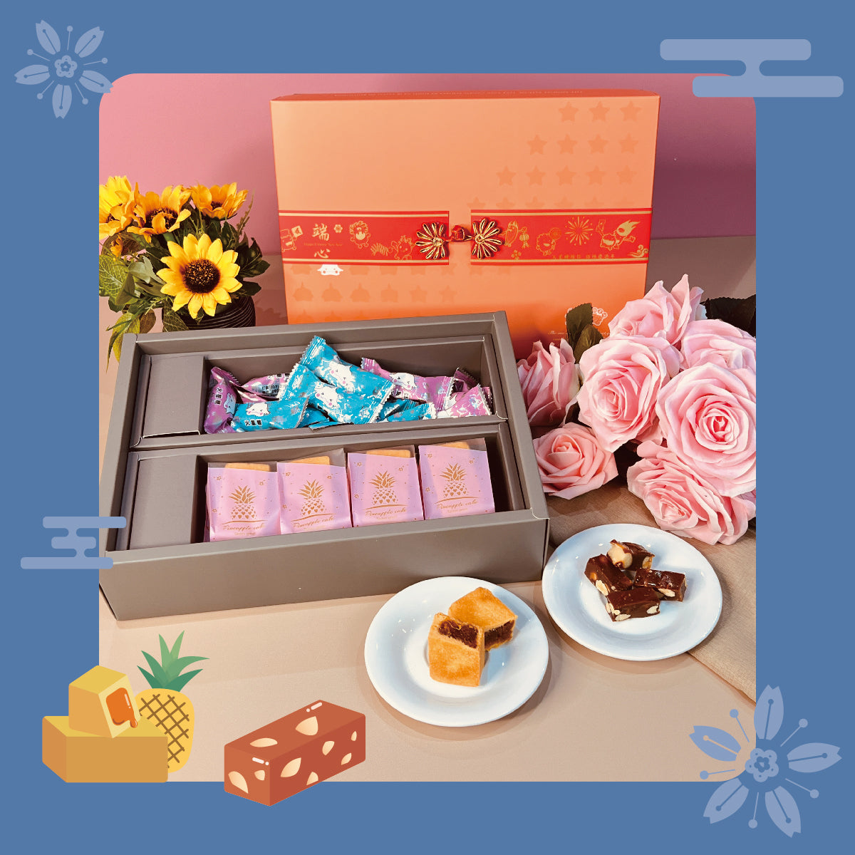 | 成分說明: | 火星糖(夏威夷豆、杏仁果粒、海藻糖、砂糖、特級麥芽、鮮奶、鮮奶油、寒天粉、義大利海鹽)、鳳梨酥(低筋麵粉、糖粉、無鹽發酵奶油、無水奶油、蛋黃、全脂奶粉、土鳳梨餡(鳳梨、砂糖、精緻麥芽、檸檬、沙拉油)) |