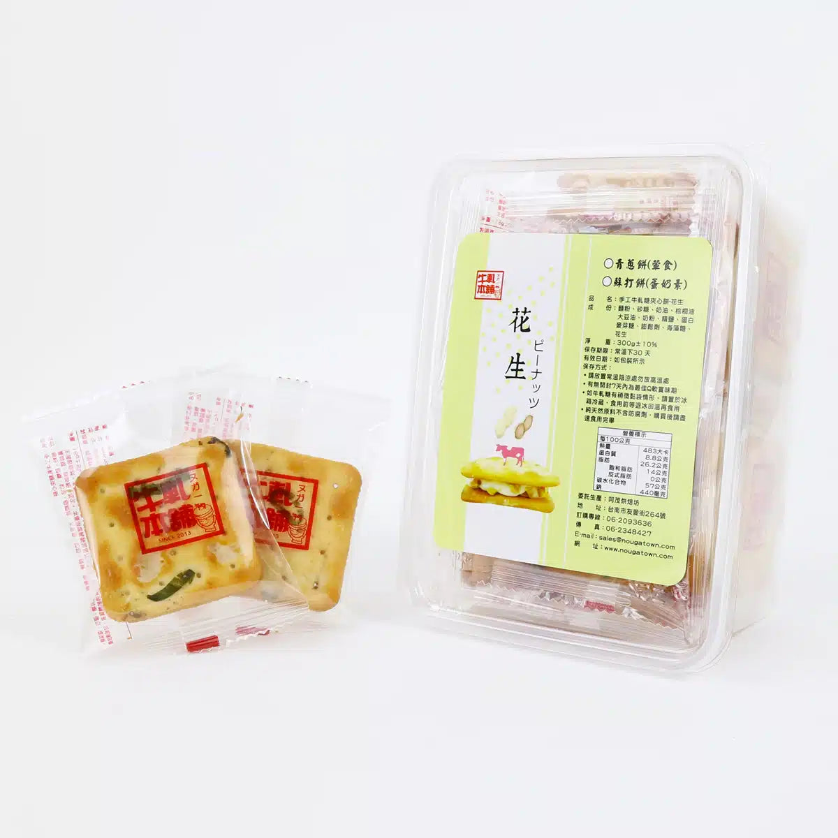 牛軋本舖 牛軋糖夾心餅-16片裝-青蔥餅(植物五辛素)-花生(16片*盒)