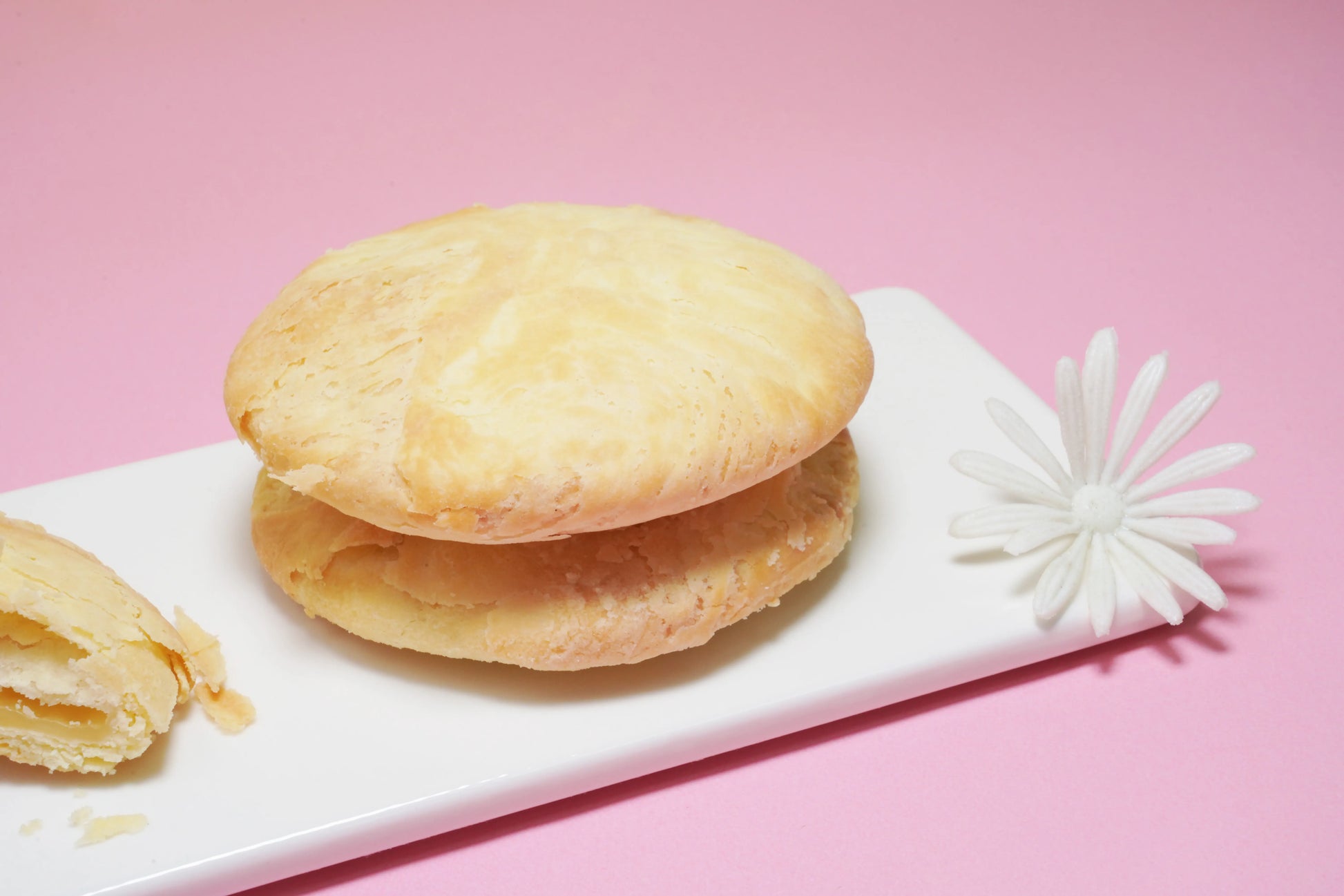 紅櫻花改良了以往傳統的太陽餅餅皮未吃先碎的缺點,用手工桿出層層酥薄的餅皮,酥而不碎,裹著濃而不膩的麥芽餡,是歷久不變的美味。