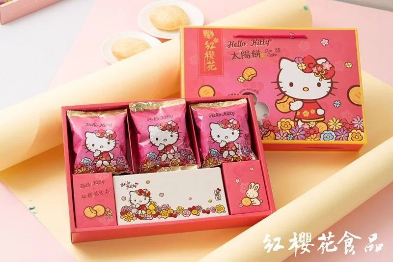 台中最經典的太陽餅伴手禮,紅櫻花讓太陽餅不再未吃先碎,快來搶鮮體驗吧~【三麗鷗授權】Hello Kitty 太陽餅禮盒 - 贈Hello Kitty長型瓷盤是你年節送禮首選推薦,現在購買還加贈Hello Kitty長型瓷盤乙組,不管是要送給長輩、送給上司、送給同事、送給親戚、送給朋友,甚至是要留著自己享用,都很適合喔。