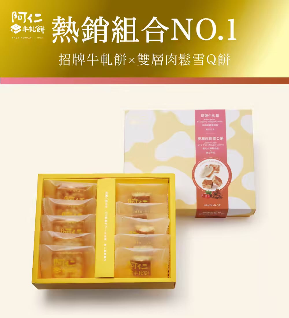 阿仁 牛軋餅【新裝上市】招牌牛+肉鬆雪小禮盒(純手工現做)